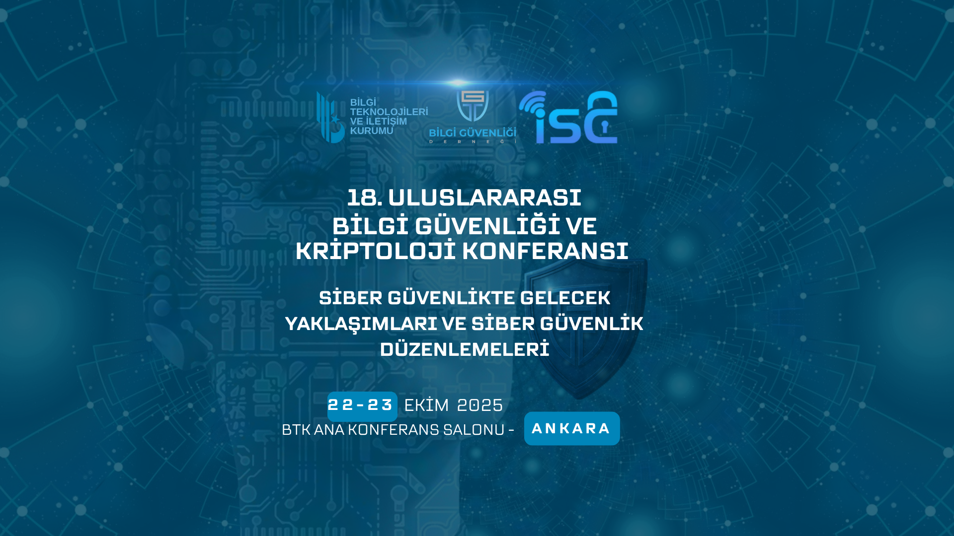 18. Uluslararası Bilgi Güvenliği ve Kriptoloji Konferansı-ISC Türkiye 2025, “Siber Güvenlikte Gelecek Yaklaşımları ve Siber Güvenlik Düzenlemeleri” ana temasıyla, 22-23 Ekim 2025 tarihlerinde, Ankara’da Bilgi Teknolojileri ve İletişim Kurumu (BTK) Ana Konferans Salonunda gerçekleştirilecektir.